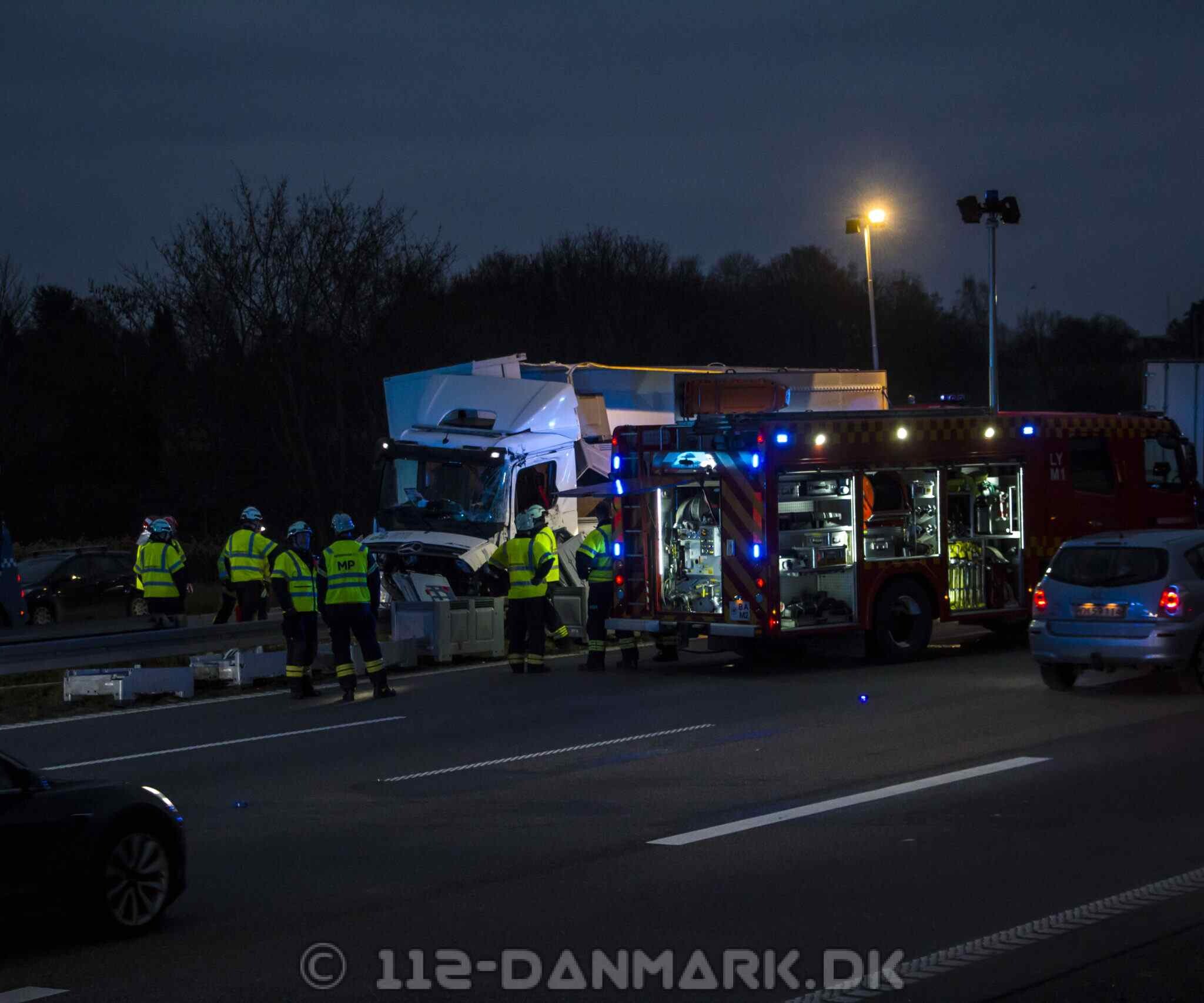 En lastbilchauffør fik mandag morgen et ildebefindende og kørte galt på Helsingørmotorvejen ved Lyngby C. Ulykken skete kort efter kl. 07 i nordgående retning.