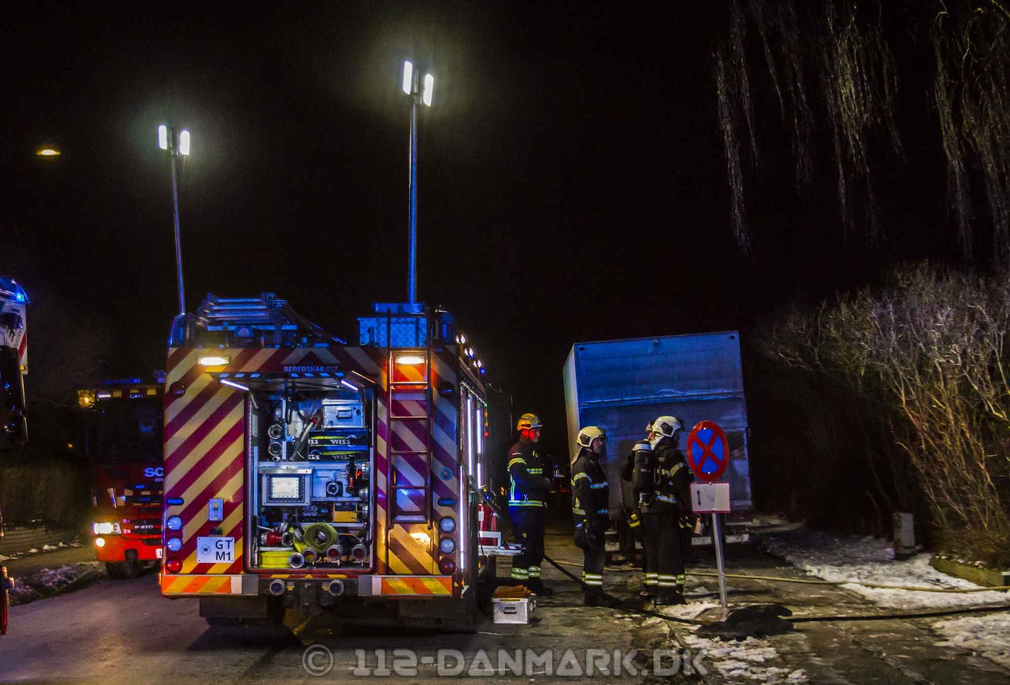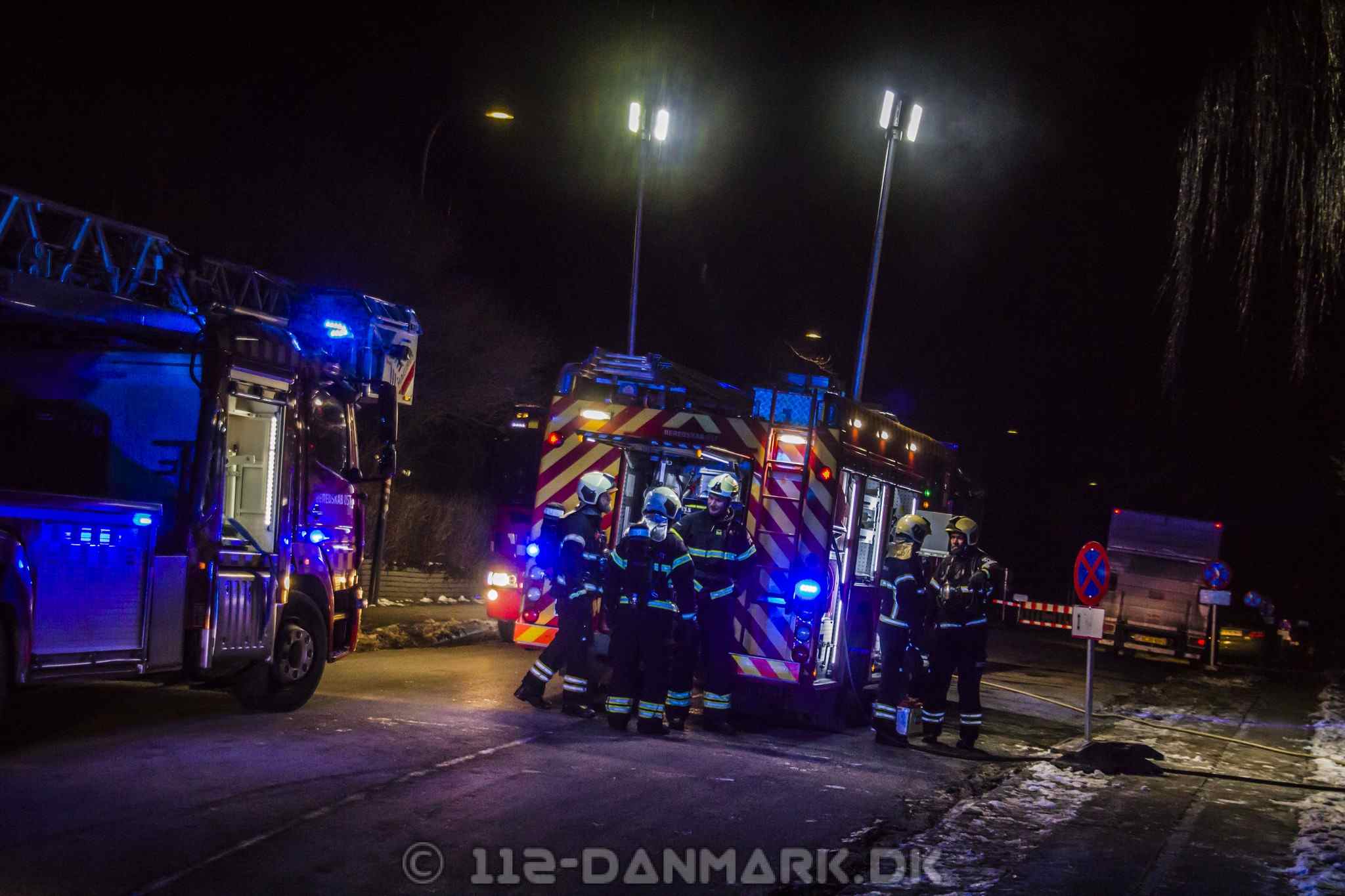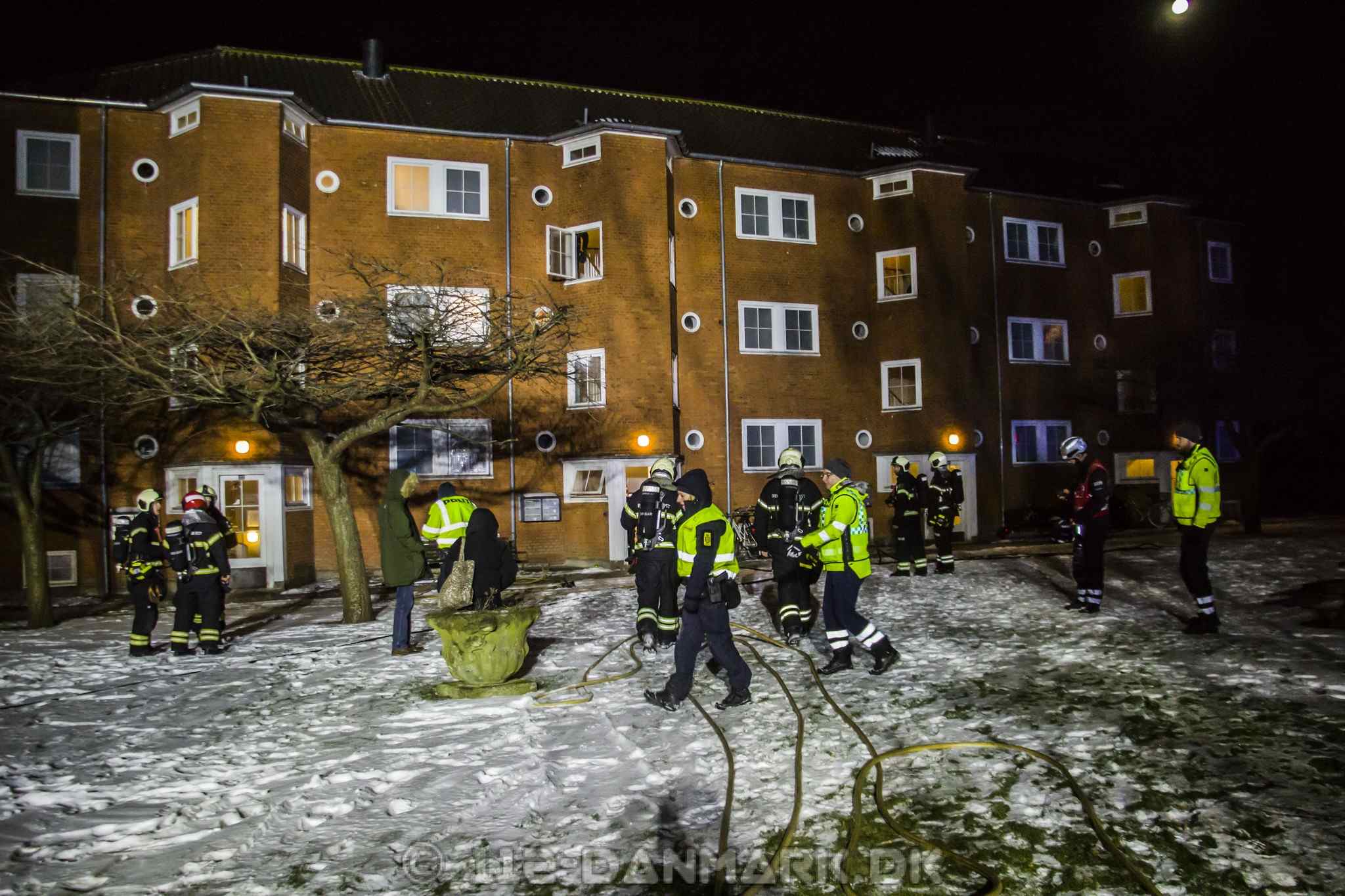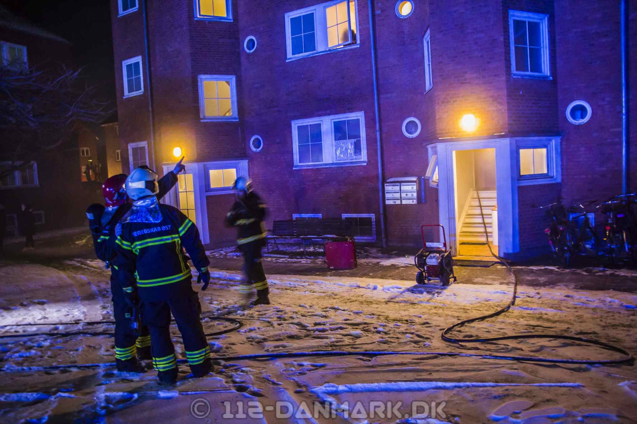 Kl. 05.12 modtager Beredskab Øst og Nordsjællands Politi en melding om røg fra en lejlighed på adressen Stolpegårdsvej 39 i Gentofte. Ved ankomsten finder de en lejlighed, hvor det brænder kraftigt i stuen. Mens nogle brandfolk trænger ind i lejligheden, går andre i gang med at evakuere opgangen. Fire ambulancer og to akutlæger bliver sendt til adressen